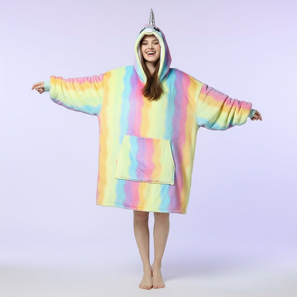 The oversized fit ensures maximum comfort, while the soft plush material makes it feel like a wearable hug. With a roomy hood and large front pocket, this hoodie is practical, cozy, and perfect for layering. Bring a little fantasy into your daily wear with this fun, Instagram-ready piece.